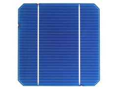 電池片正面為堿腐蝕金字塔表面,藍色的減反射膜確保了對太陽光更好的吸收,提高了電池轉換效率。 |