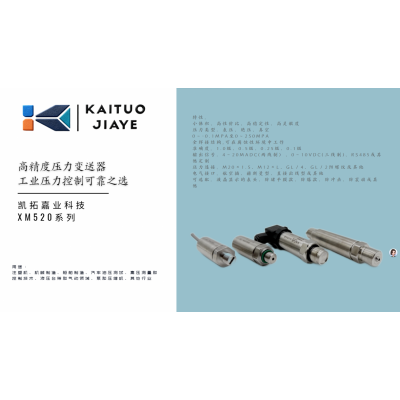 凱拓嘉業(yè)科技,深耕工業(yè)測量領(lǐng)域多年,以全域定制為核心導(dǎo)向,致力于成為壓力、差壓、液位、溫度測量解決方案的專業(yè)整合服務(wù)商。我們深耕全系列產(chǎn)品的定制化設(shè)計、高效落地與全周期服務(wù),深度整合行業(yè)優(yōu)質(zhì)資源與 技術(shù),為國內(nèi)外各行業(yè)客戶提供適配性強、穩(wěn)定可靠的溫壓測量產(chǎn)品。旗下曉鳴 XM520 系列壓力與溫度產(chǎn)品,憑借務(wù)實創(chuàng)新技術(shù),助力客戶從容應(yīng)對各類工業(yè)測量場景挑戰(zhàn),以專業(yè)實力賦能工業(yè)智能化升級,為客戶創(chuàng)造可持續(xù)價值。